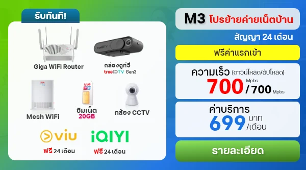 ความเร็ว 700/700 mbps +กล่องดูทีวี TrueID TV+Mesh WiFi+กล้องวงจรปิด 1 ตัว