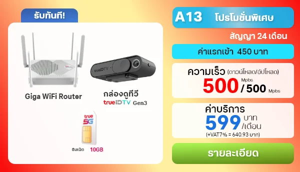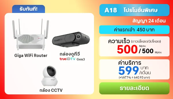 แพ็กเกจย้ายค่าย ย้ายมาเน็ตบ้านทรู พิเศษสุด อัพสปีดเป็น 700/700 Mbps. นาน 24 เดือน ทุกแพ็กเกจพร้อมซิมเน็ตทรู ราคาเริ่มต้น 599 บาท ฟรีค่าติดตั้ง